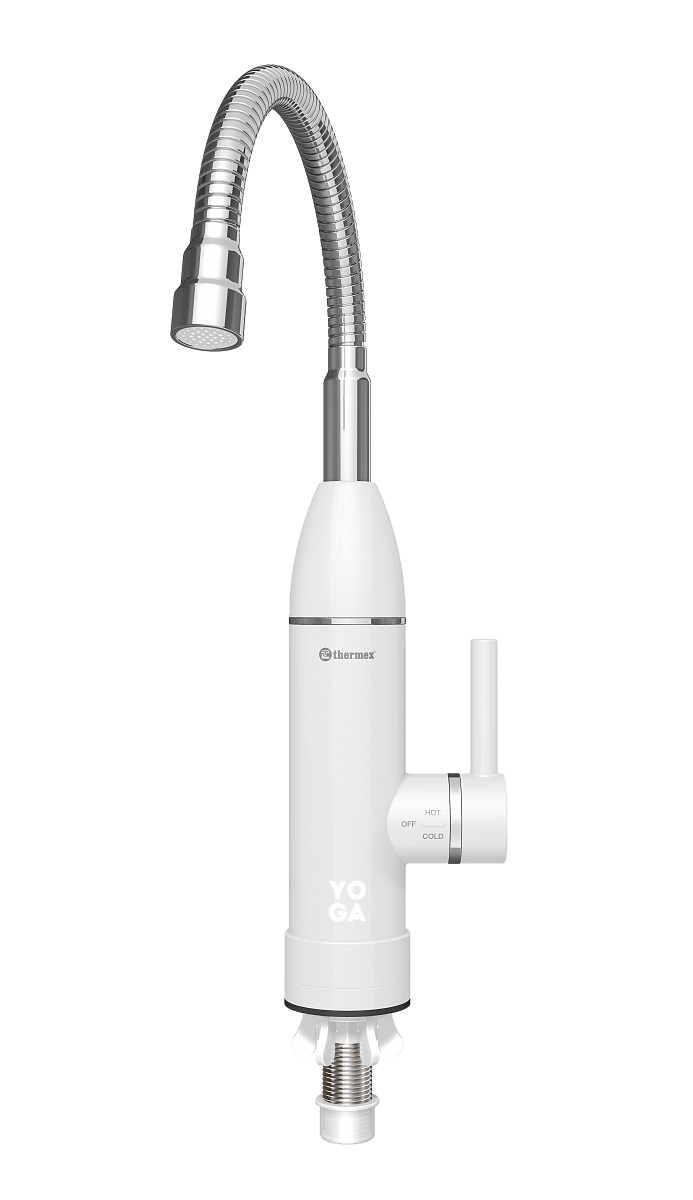 Кран мгновенного нагрева с гибким изливом и надежным металлическим ТЭНом мощностью 3000 Вт. Thermex Yoga устанавливается на раковину, заменяет обычный смеситель и водонагреватель и экономит место и средства на покупку дополнительных приборов.