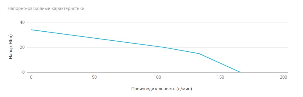 Рабочее положение насоса — вертикальное. Длина электрокабеля — 5 м. Степень защиты насоса — IPX8.