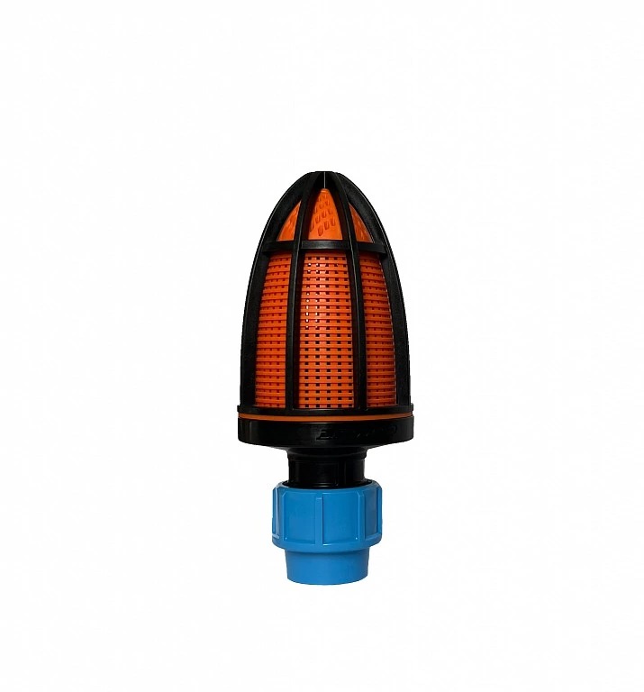 Сетчатый водозаборный фильтр со встроенным обратным клапаном устанавливается на всасывающую магистраль. Пластиковая заборная сетка фильтра улавливает и не пускает в систему крупные абразивные частицы разных видов примесей.