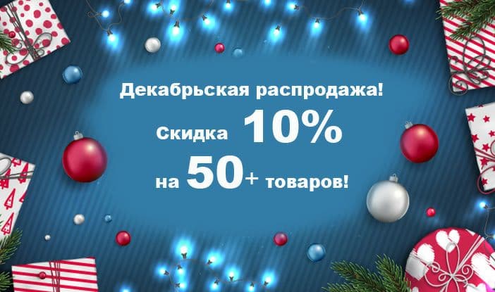 Декабрь месяц праздников и подарков. Мы тоже решили порадовать наших посетителей предложив им 10% скидку до конца месяца на ряд товаров из нашего интернет-магазина!