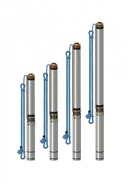 В серии представлены 4 модели с максимальным расходом воды 45 л/мин и максимальным напором от 42 до 110 м, кабелем от 20 до 65 м.