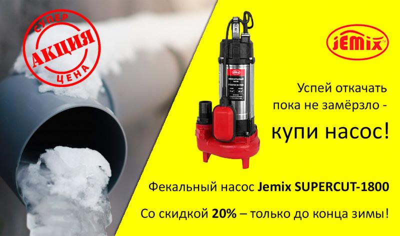 Продлен до конца февраля 2020 года срок действия Акции на фекальный насос Jemix Supercut 1800.