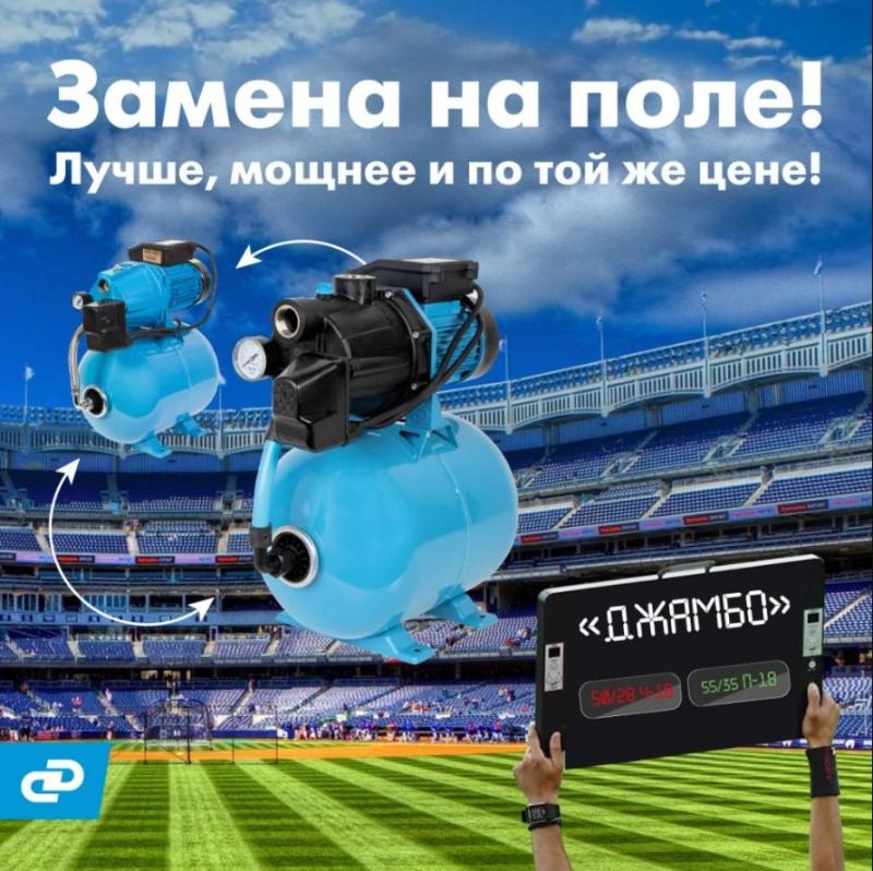 Компания «ДЖИЛЕКС» выводит из ассортимента «ДЖАМБО» 50/28 Ч-18, и представляет новую модель поверхностного насоса-автомата «ДЖАМБО» 55/35 П-18.
