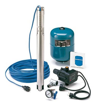 Можно приобрести полный комплект скважинного насоса со всеми автоматическими устройствами, при покупке которого у вас больше не будет нерешенных задач по обеспечению автоматической подачи воды из скважины в дом. Комплект оборудования состоит из:
